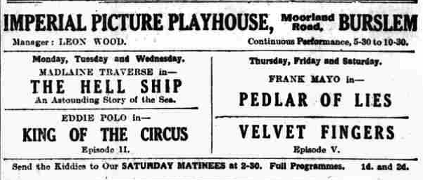 The next time that we have clear evidence of his whereabouts is in November 1921 when he is listed as a committee member of the CEA –(Cinematic Exhibitors Association) in North Staffordshire followed by a period up to 1923 where he is listed as Manager of The Imperial Picture Playhouse in Burslem, Staffordshire, whilst in that year his and Zarina’s daughter Doreen Gwenfrewi (Frewi) was born on March 9, 1923, in Holywell, Flintshire, Wales.